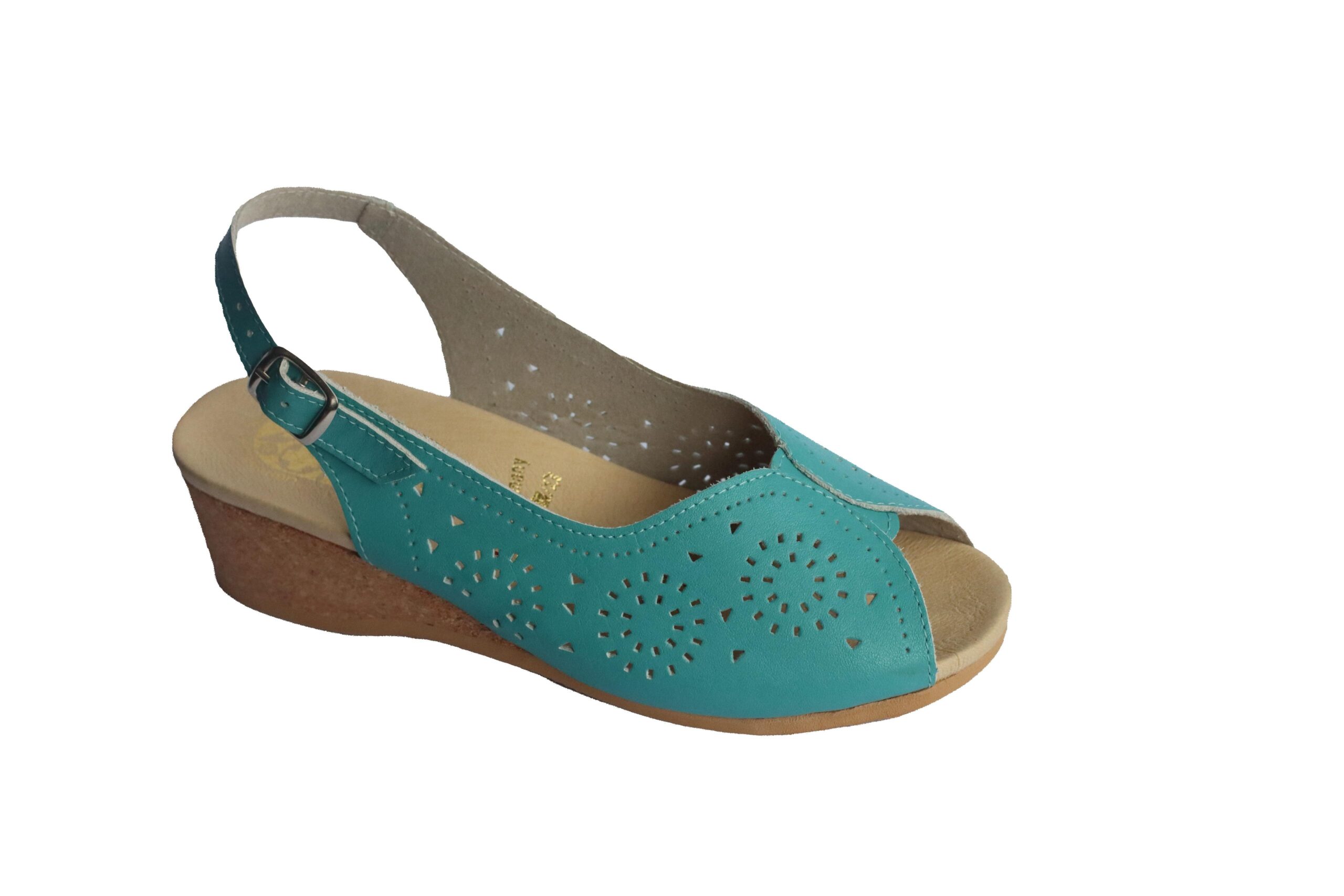 Découvrez les sandales classiques Wörishofer 966, avec bride arrière au talon, cuir uni perforé turquoise.